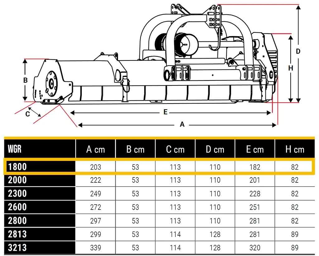 WGR är en kraftig betesputs byggd för putsning av gräs, majsstjälkar och sly upp till hela Ø 80 mm. WGR 1800 är den minsta i serien med en arbetsbredd på 1,82 m och utrustad med hammarslagor på 2,1 kg (kan även väljas med Y-slagor). Klipparen har en kraftig dubbel trepunktsram med inbyggd hydraulisk sidoförskjutning på 37 cm. Serien lämpar sig för traktorer från 65-140 hk.