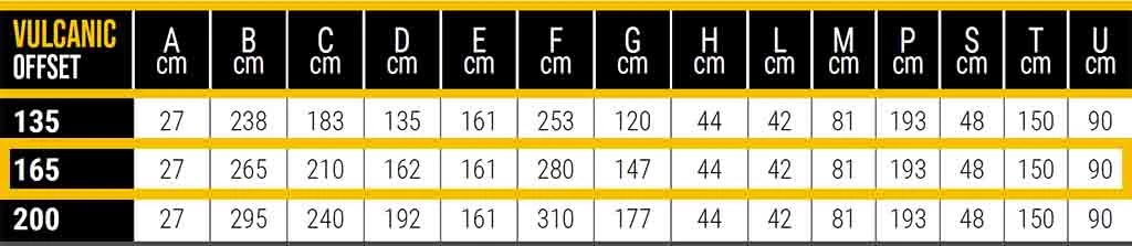 Vulcanic 165 arbetsbredd är 1,62 m och har en räckvidd på 2,65 m vid val av offsetutförande.