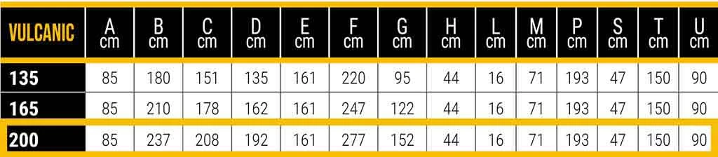 Vulcanic 200 arbetsbredd är 1,92 m och har en räckvidd på 2,95 m vid val av offsetutförande.