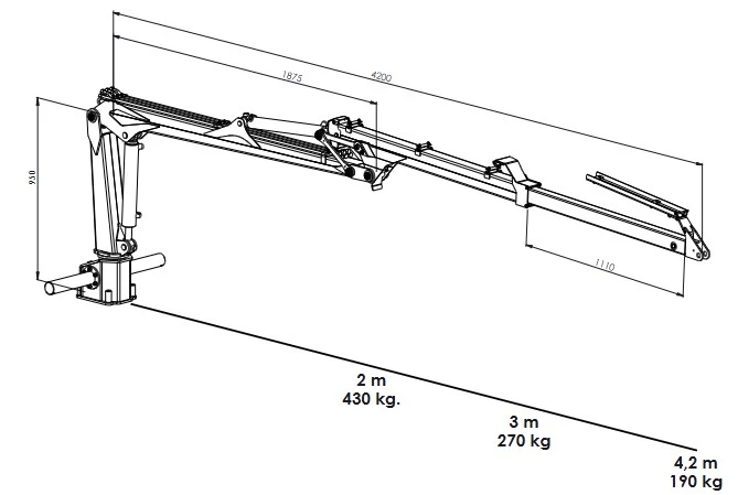 Med en bruttovikt på 1 500 kg och en räckvidd på 4,2 m erbjuder denna modell en perfekt balans mellan prestanda och lättviktsdesign. Trots sin storlek är ekipaget utrustat med högkvalitativa funktioner, såsom en hållbar dubbelrmkonstruktions och avancerad KTL- och pulverlackering för utmärkt korrosionsbeständighet.