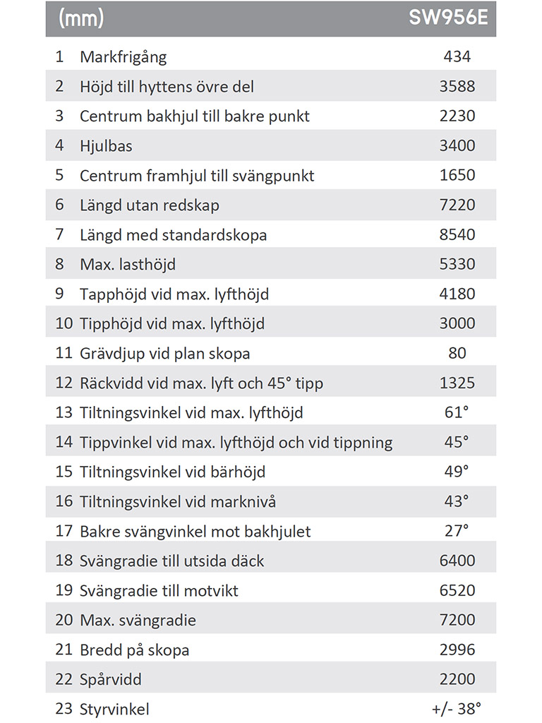 SANY SW956E är en helt eldriven hjullastare som kombinerar hög prestanda med hållbar teknik. Den är utvecklad för att möta den växande efterfrågan på miljövänliga maskiner inom bygg, industri och kommunal verksamhet. Med modern design, avancerade funktioner och noll utsläpp är SW956E ett smart val för dig som vill ligga i framkant.