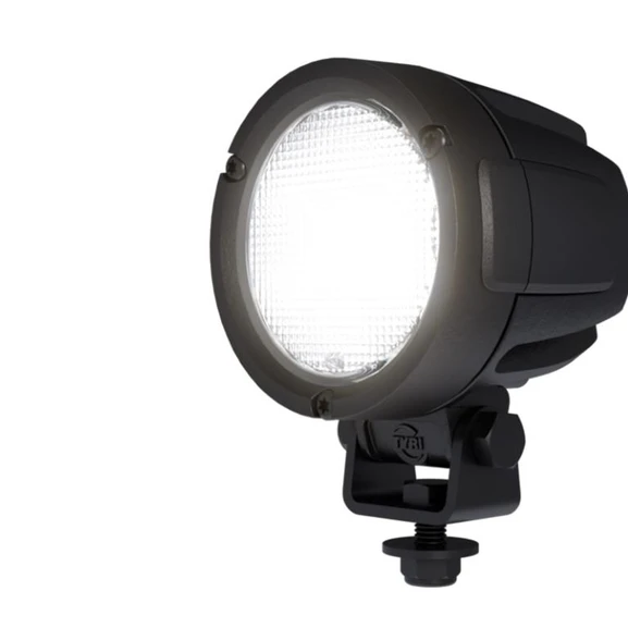 Högkvalitativ arbetsbelysning i LED från svenska Tyri monterade i maskinens orginalfästen bestående av 4 st modell PLU-004 på 1400 lumen placerade:
