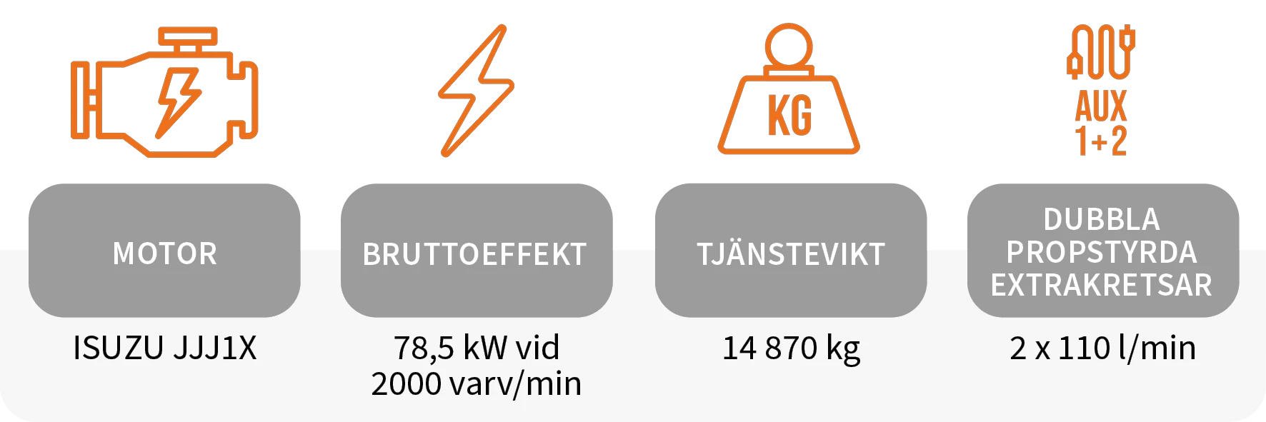 - Max. hydraulflöde: 193,2 l/min