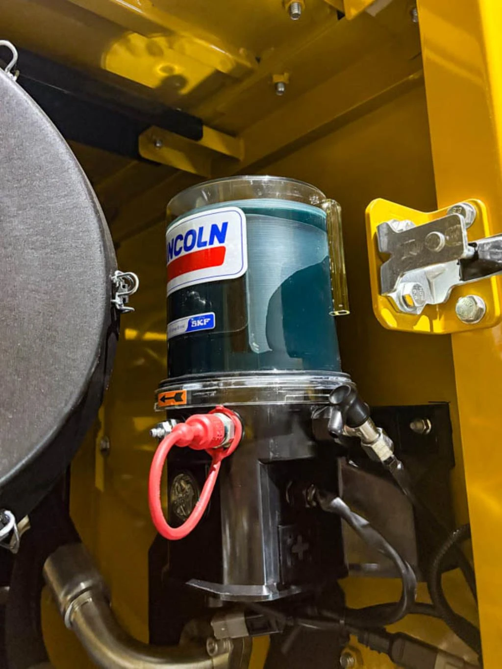 Centralsmörjning eliminerar behovet av manuell smörjning av olika punkter på grävmaskinen. Systemet är programmerat för att smörja smörjpunkterna automatiskt med rätt mängd smörjmedel vid regelbundna intervaller.