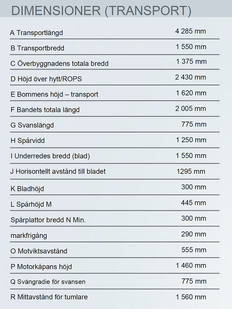 Med en vikt på bara 2 450 kg och med en transporthöjd på endast 2 760 mm är den enkel att transportera, kan lastas och lossas snabbt.