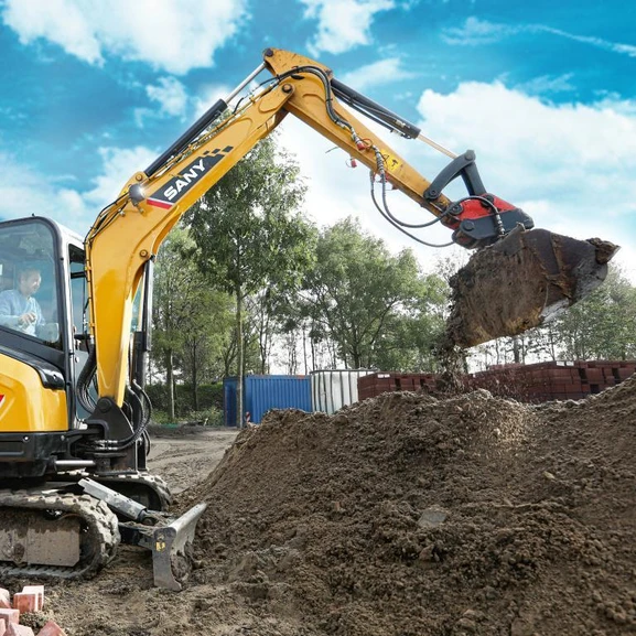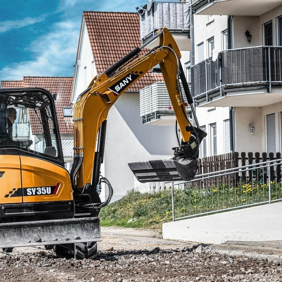 SY35U grävmaskin med kortrumpa erbjuder en imponerande prestanda trots sin kompakta storlek. Denna kraftfulla maskin är det ultimata verktyget i situationer där både styrka och smidighet är avgörande. Med imponerande grävkraft och väl tilltagna hydraulflöden är maskinen den perfekta allroundgrävaren för många olika jobb och lämnar ett litet avtryck tack vare sin kompakthet och låga marktryck på 0.32 kg/m2.