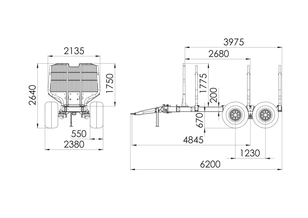 Palms skogsvagn V12D har en lastarea mot grinden på 2,5 m².