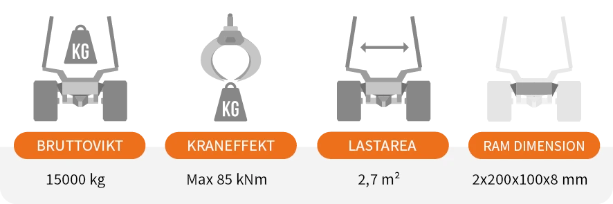 D-seriens skogsvagnar från Palms är uppbyggda med en dubbelram, vilket gör dem till starka lastbärare med hög lastkapacitet.