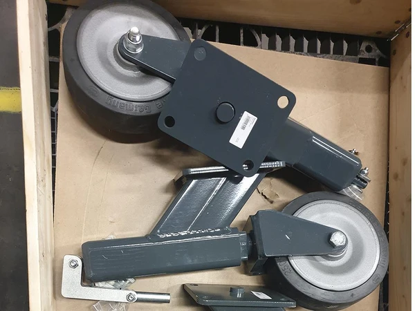 Ett massivt pivåhjul med upphängning. Det underlättar nivåjusteringen av redskapet.